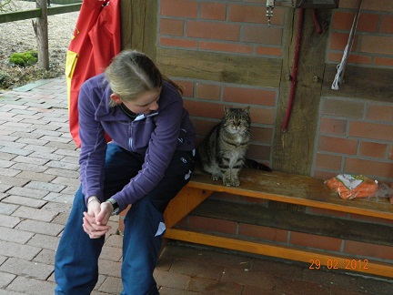 Wednesday morning at the crack of dawn I got a call from Klaus and Mom, Mom had arrived safely in Canada and is with Klaus – what great news to wake up to. The weather was miserable once again, with us getting wet going and coming from our boys. Our boys had a blast running around in the paddock in the wet; they seem to get extra energy in this weather. Once they were back inside, groomed and given grass and water, we had to go back into town to pick up some documents, so we got even wetter. The cycle back home was also wet, but there was one consolation, at least there was very little wind. The cycle to our boys in the afternoon was not as wet; it was just drizzling and misty. At the stables there is a cat that has learned that we have treats in our boxes, so she is always there waiting for more – She is so cute. After tucking our boys up for the night, we cycled home and changed into dry clothes – that was really nice.