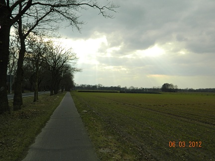 Tuesday morning there was the most beautiful sunrise. What a pretty day. Our boys were happy to go out in the paddock with no blankets for a change – needless to say they both rolled and looked like mud monsters when it was time to bring them in – they had a blast. Once we brought our boys in, the grooming took a while to get them clean, but they had fun, so it was worth it. Once cleaned, watered and grassed, we put on their day blankets, because the wind had started blowing again, and we do not want our boys getting sick. In the afternoon the wind was still blowing, so the cycle was challenging to say the least. The clouds had started rolling in, but the sun was still trying to stick its head out, which made some lovely scenes. We stopped to take pictures, but it is prettier in real life. Once our boys were put into their pajamas, we were off back home.