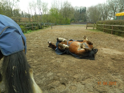 Tuesday morning it was still raining, and the wind was blowing like crazy. Our boys enjoyed their romp in the paddock, even though they were still clothed. Once we had finished up with their stables we brought them in, gave them a good groom and changed their blankets, they were ready to cuddle up for the day. While our boys were cuddling, they were full of shavings to prove it, we cycled to town to get some groceries, it was really wet, but at least it was not too cold. The cycle home was great, the wind we fought all the way into town, was now behind us, and pushed us home, and the rain had let up a little, so all in all it was a really easy cycle. The afternoon cycle was dry, but the wind going to our boys was still really strong. After sorting out our boys, and putting on their pajamas, it was back home again, with the help of wind. Instead of taking 20 mins to cycle back it took 10 mins because of the winds help. The thing I have missed the most here in Germany is not being able to just watch our horses play all day. When we were back in SA, the horses were out in their paddocks all day, and they would play and we could just watch them from the window, or from the pool or back lawn, appreciating God’s wonderful creatures. I miss having the horses right there with us.